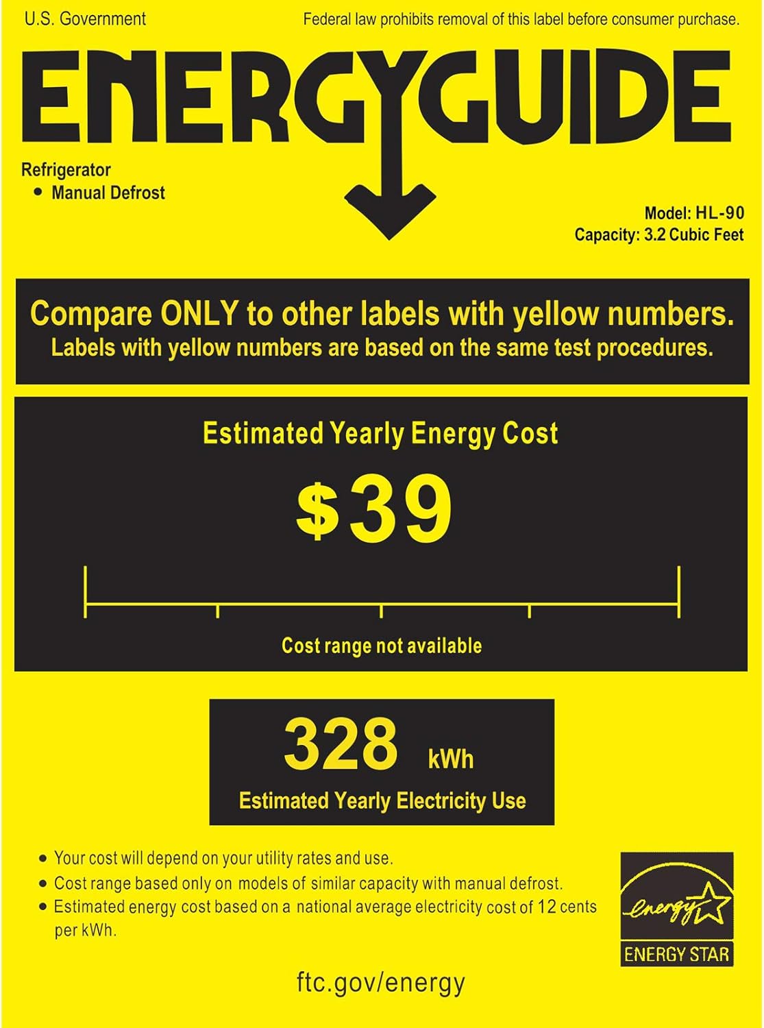 | Annual Energy Consumption | 328 Kilowatt Hours |