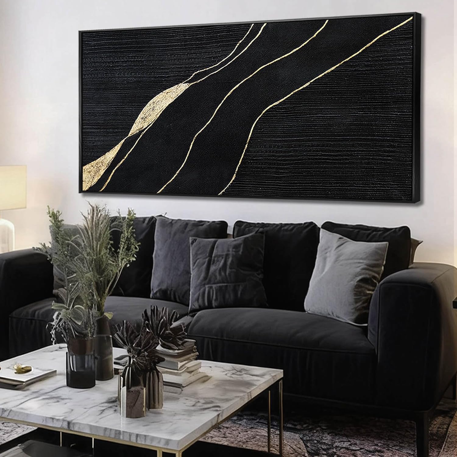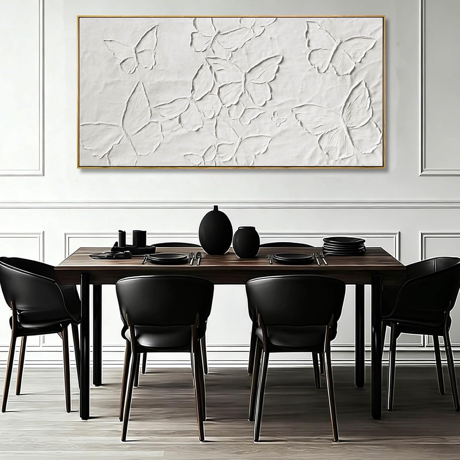 This hand painted abstract wall art is created as an oil painting on canvas, featuring layered brushwork and visible texture. The abstract background is complemented by painted butterfly elements, which are clearly part of the artwork and provide a natural point of focus. The composition emphasizes flow and surface depth rather than sharp detail. The butterfly adds a sense of lightness and movement, balancing the heavier textures of the abstract forms. With its 29 x 58 inch horizontal layout, this large abstract wall art is well suited for wide wall spaces and works naturally as above sofa wall art in living rooms. Completed with a natural wood frame, this framed canvas wall art is ready to hang and integrates easily into modern, contemporary, and neutral interior styles.