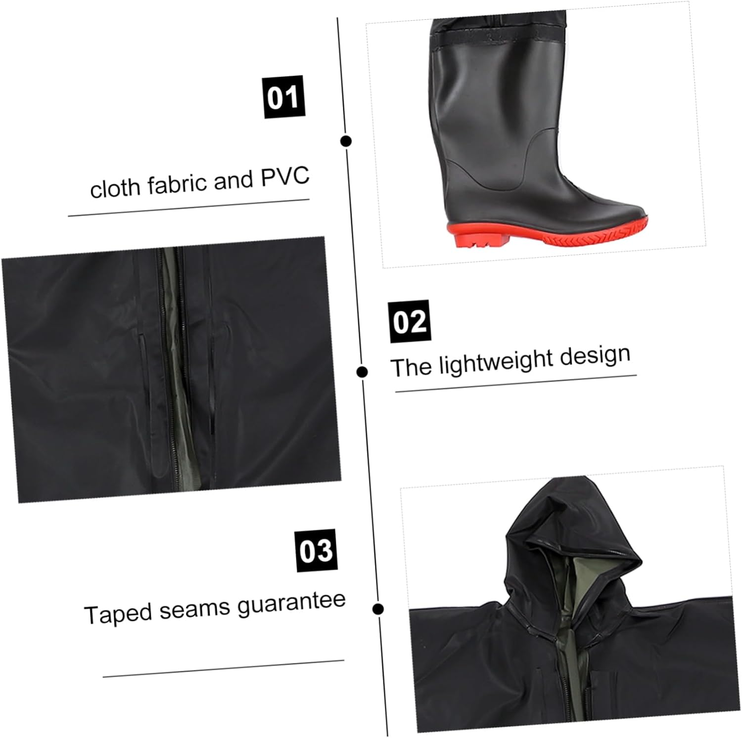 Package Include 1 x fishing overalls pants Features -Color:Black fishing gear for women -Size 40: Full Body Length: 194cm/76.24in; Pants Length: 163cm/64.17in; Bust: 132cm/51.96in; Leg circumference: 85cm/33.46in; Leg Length: 81cm/31.88in saltwater wading boot. -Material: PVC, knitted cloth fishing accessories. -Size 43: Full Body Length: 200cm/78.60in; Pants Length: 169cm/66.53in; Bust: 133cm/52.36in; Leg circumference: 87cm/34.25in; Leg Length: 86cm/33.85in fishing waders for men. -Size 41: Full Body Length: 197cm/77.42in; Pants Length: 166cm/65.35in; Bust: 132cm/51.96in; Leg circumference: 86cm/33.85in; Leg Length: 84cm/33.07in fishing waders for women. -Size 39: Full Body Length: 194cm/76.24in; Pants Length: 163cm/64.17in; Bust: 132cm/51.96in; Leg circumference: 85cm/33.46in; Leg Length: 81cm/31.88in Wader Suits. -Size 42: Full Body Length: 197cm/77.42in; Pants Length: 166cm/65.35in; Bust: 132cm/51.96in; Leg circumference: 86cm/33.85in; Leg Length: 84cm/33.07in Men Fishing Wader. - The soles are thick and flexible, softer and non-stop, and firm grip youth waders. - With quick release zips, delivers convenience, convenient for outdoor use waterproof fishing pants. - Made of carefully selected materials, strong, and breathable rain pant.Goods Informationfishing waders for men This is a fishing wader suits for outdoor fishing, made of materials and will not be easily damaged.ice fishing gear Simple structure and excellent craftsmanship make it easy to wear.saltwater wading boot It has reasonable design, functions, and can be well applied to diving fishing