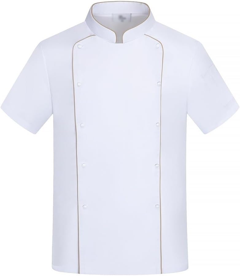 Features--Soft cotton blend material offers more comfort during your work time.--High moisture absorption and sweat releasing function, suit for all seasons!--Jackets with pockets offers place for your pen or thermometer during work.--Simple and classic design, suits both men and women.--Wide range of applications, such as kitchen at home, hotel, kitchen, Bakery, restaurant, outdoor grill, etc.Material: cotton blendPackage Content : 1 * Chef CoatSize: please refer to the size chart by the image!Please measure your OWN size before choosing a size, especially the CHEST size!Washing Instruction: Cold water under 30 degree, hand wash; Do not bleach, do not tumble dry, do not iron.Note: There could be a little smells for first wearing, please hang for a while, it will disappear.